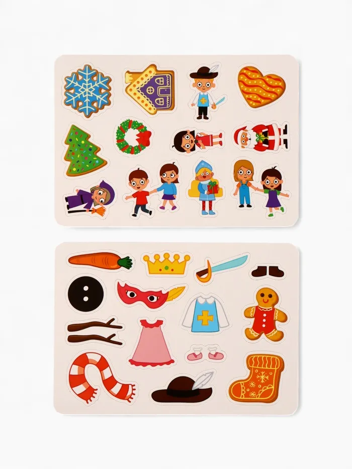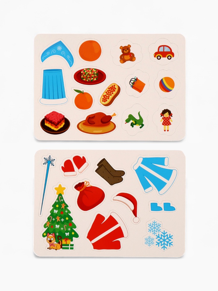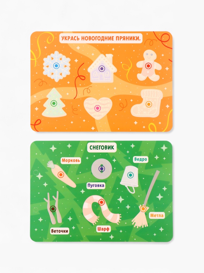 - Игра с липучками помогает освоить базовые понятия: цвета, формы, праздничные символы.