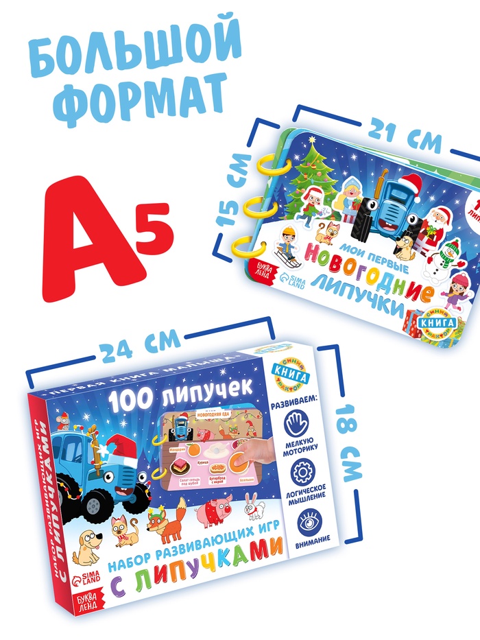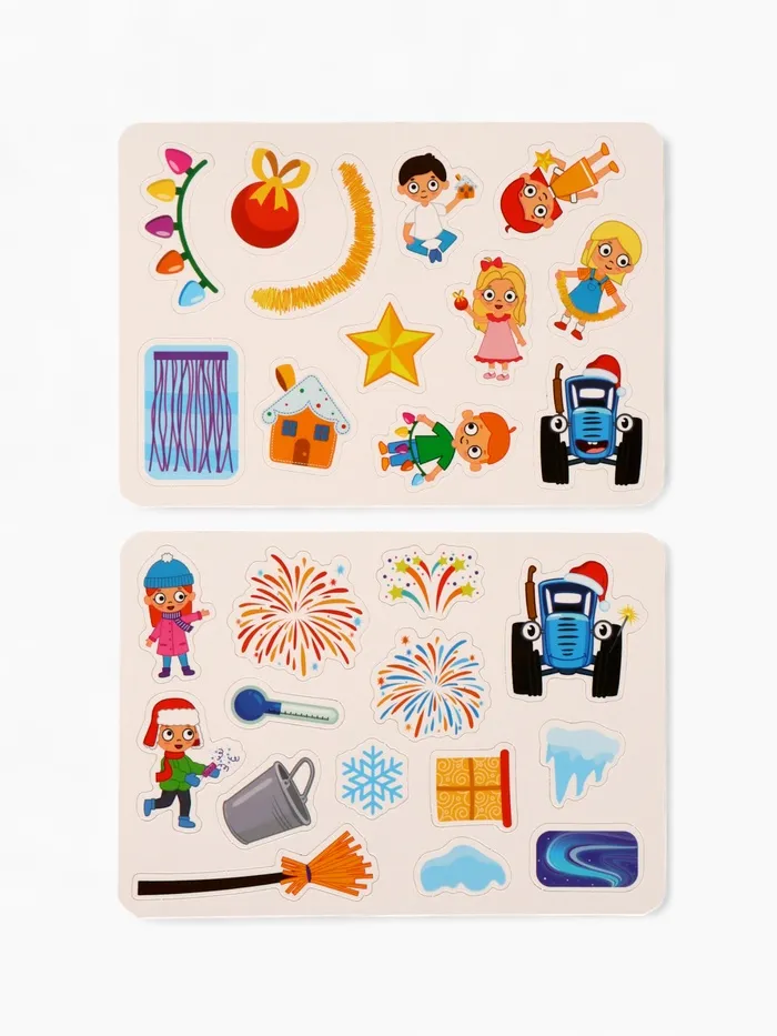 Книга детская «Мои первые новогодние липучки», 100 липучек, Синий трактор — Характеристики