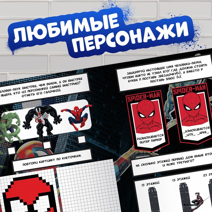 «Паучьи задачки» помогают детям осваивать важные навыки через игру. Решая головоломки и выполняя упражнения, ребёнок развивает внимание, логическое мышление и умение работать с числами и словами. Каждое задание — это вызов, который вдохновляет двигаться дальше. С Человеком-пауком обучение становится не только полезным, но и весёлым!