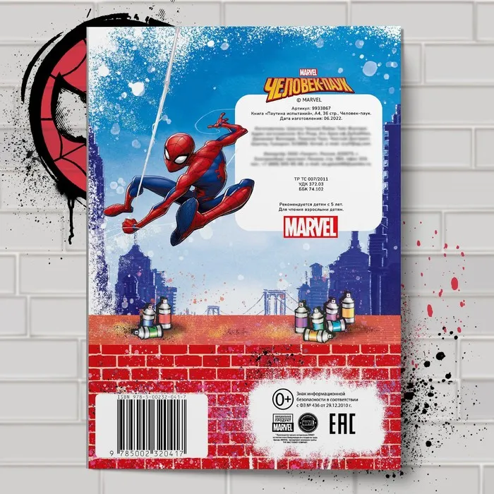 Книга детская «Паучьи задачки», А4, 36 стр., Человек-паук — Характеристики