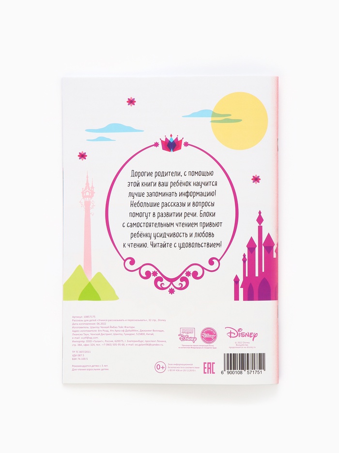 Книга детская «Рассказы. Учимся рассказывать и пересказывать», 32 стр., Disney — Характеристики