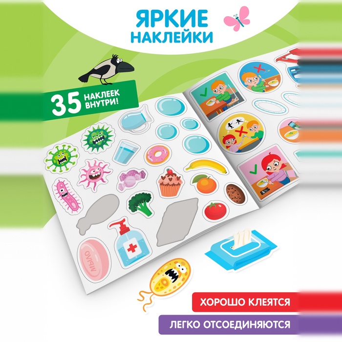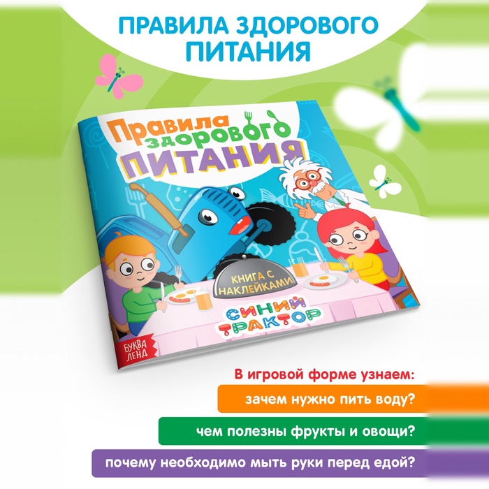 Книга детская с наклейками «Правила здорового питания», Синий трактор — Характеристики