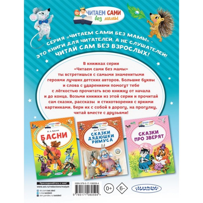 - Знакомые сказочные герои и красочные картинки поддерживают интерес малыша к книге.