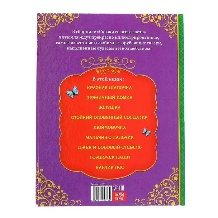 Книга «Сказки со всего света» — прекрасный выбор для семейного чтения или самостоятельного знакомства детей с миром удивительных историй. Этот сборник сказок перенесёт ребёнка в мир волшебства, дружбы и приключений, познакомив с культурными традициями разных стран. Твёрдый переплёт делает книгу долговечной, что особенно важно для детской библиотеки.