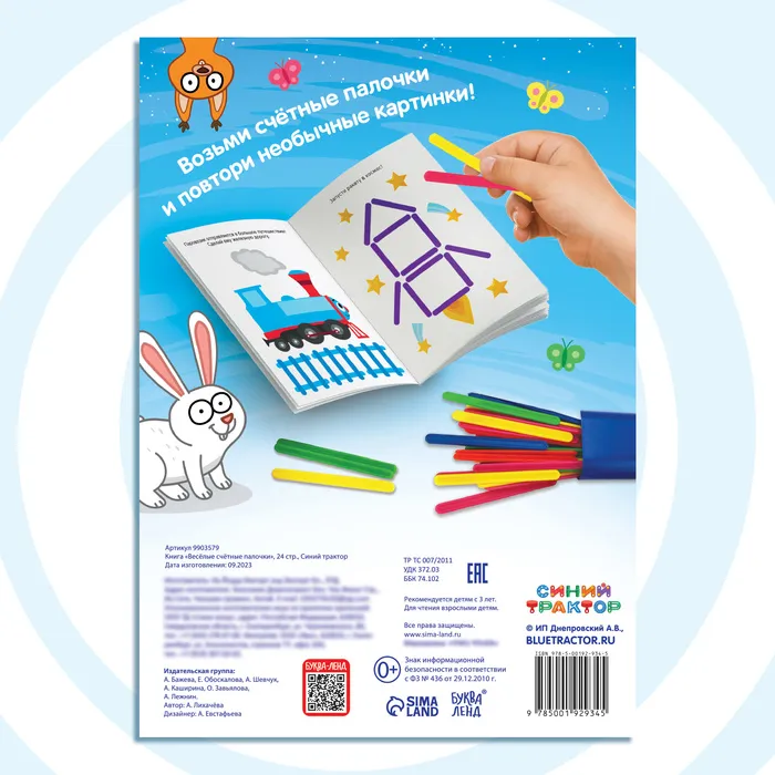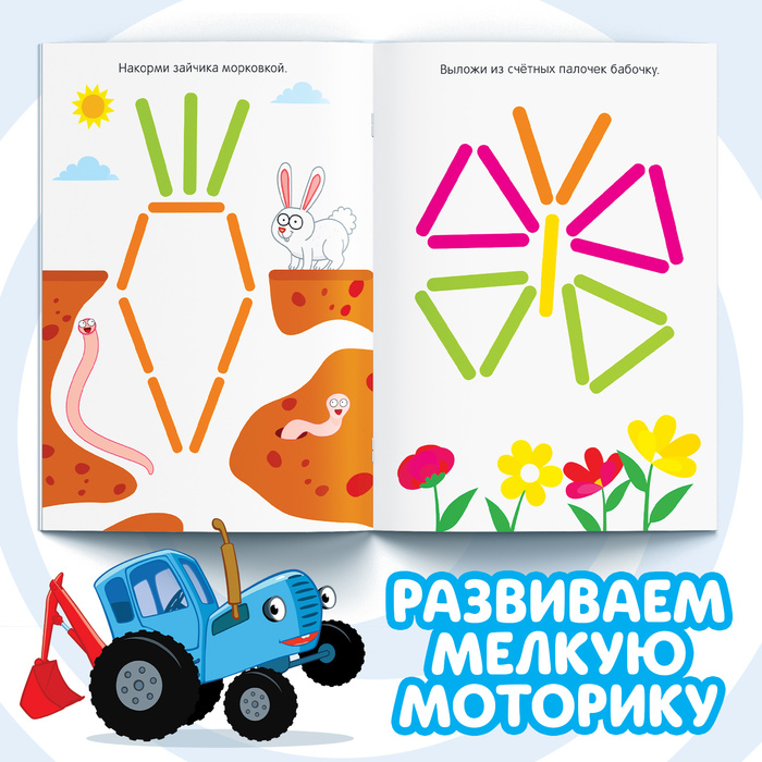 Книга детская «Весёлые счётные палочки», 24 стр., 100 палочек, Синий трактор — Характеристики