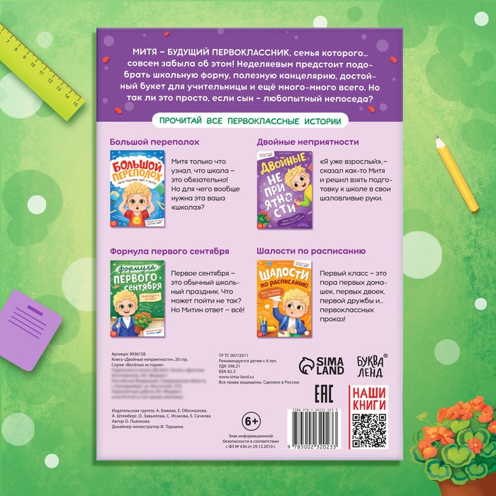 Олеся Пьянкова и Ирина Торшина придумали озорного первоклассника Митю. Олеся написала, а Ирина нарисовала несколько историй, в которых дети и их родители непременно узнают себя.