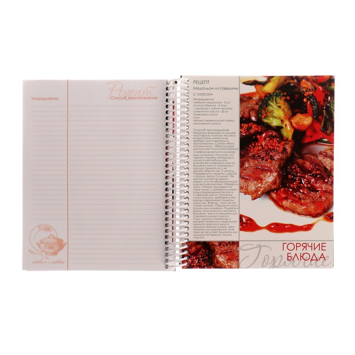 Книга для записей рецептов А5 80 листов на гребне "Моя кухня", твёрдая обложка, 5 цветных разделителей — Характеристики