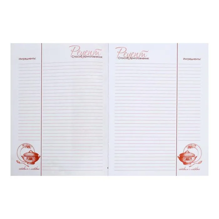 Книга для записи кулинарных рецептов А5, 96 листов "Мои рецепты", твёрдая обложка — Характеристики