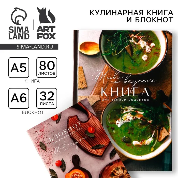 Книга для записи рецептов А5, 80 л и блокнот список покупок А6, 32л «Со вкусом» — Характеристики