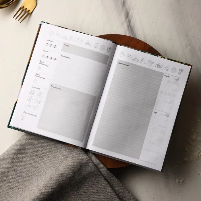 Записывайте свои кулинарные эксперименты и секреты приготовления блюд, создавая неповторимый сборник семейных рецептов. Пусть ваши кулинарные традиции живут вечно в этих страницах, становясь частью истории вашей семьи. Создайте свою собственную кулинарную энциклопедию, которая будет не только руководством по приготовлению пищи, но и драгоценным наследием для будущих поколений.