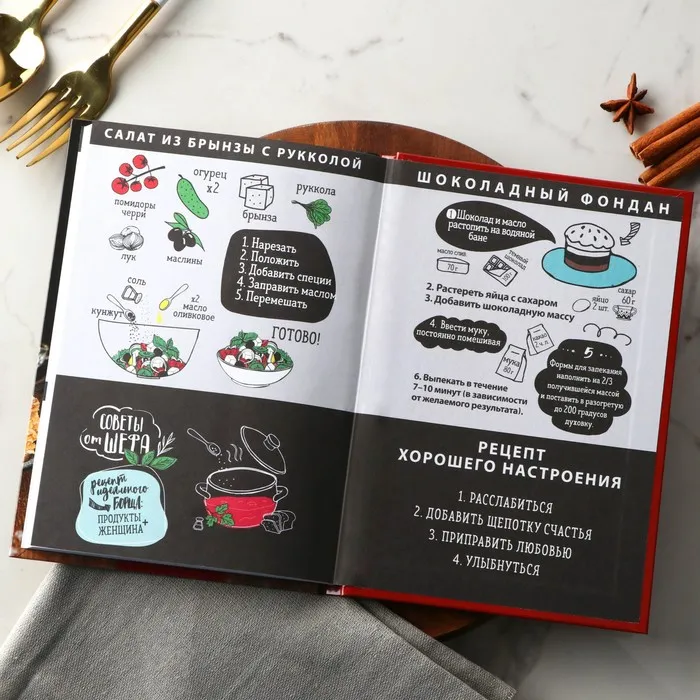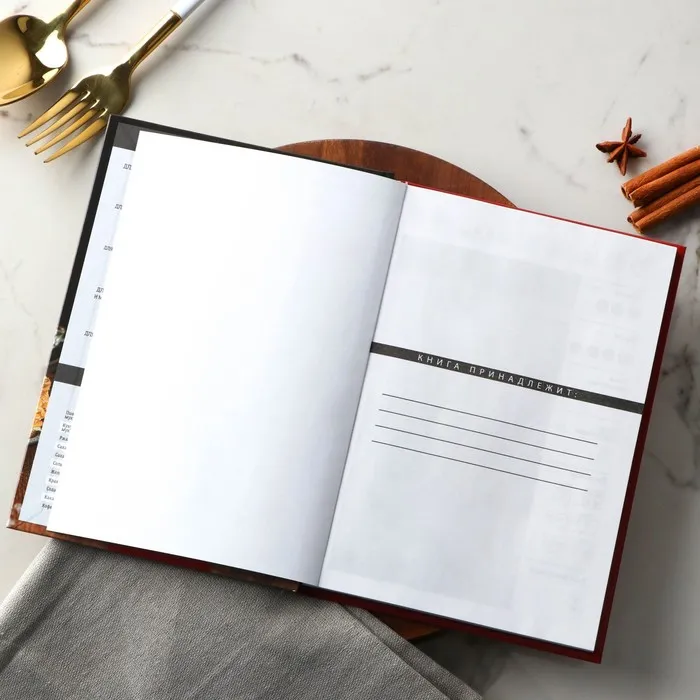Ежедневник для записи рецептов - Отличный помощник на кухне, он всегда будет под рукой, в отличие от любых электронных аналогов. Записи позволят не забыть про удачный рецепт, который снова захотите повторить. Для удобства использования, вы можете отмечать сложность, время приготовления, где готовится и количество порций, для каждого рецепта, а так же записывать весь процесс приготовления. Благодаря твердой обложке он прослужит долгие годы. А универсальный формат, не займет много места на вашей кухне.