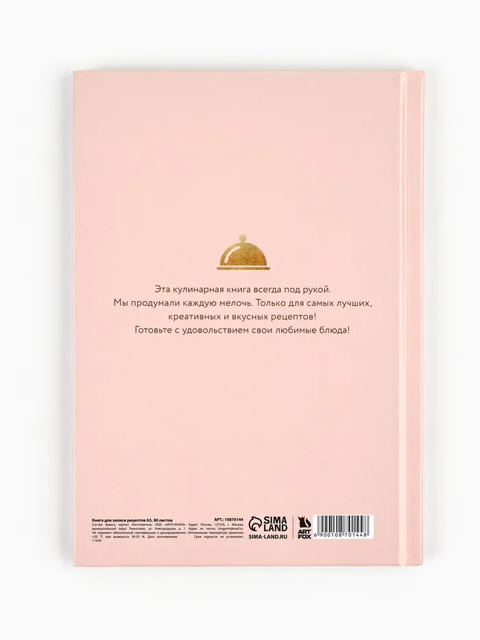 Книга для записи рецептов А5, 80 л. Твердый переплет «Шедевры»