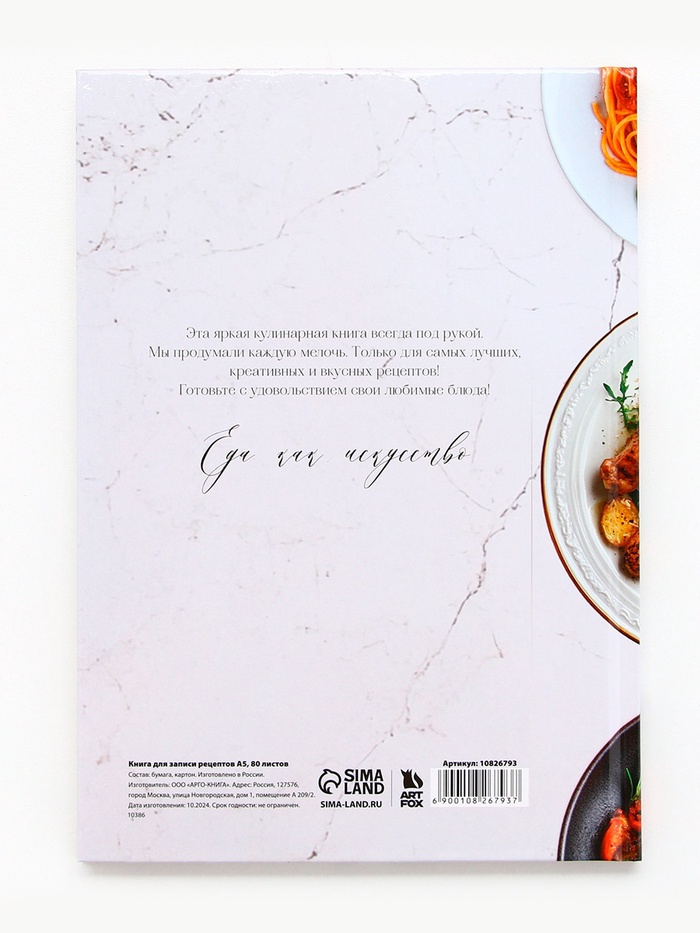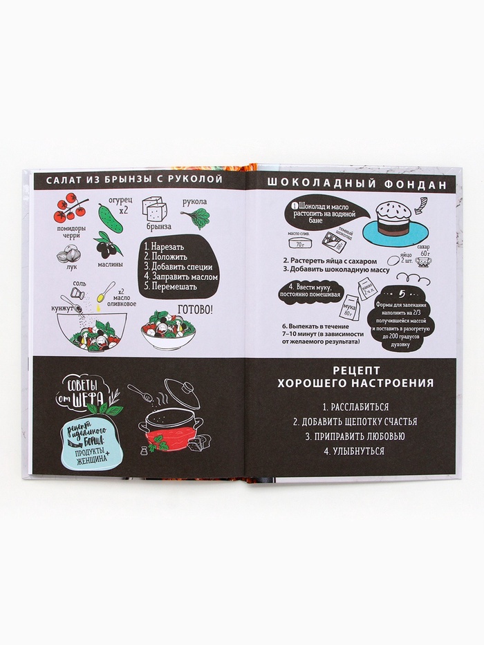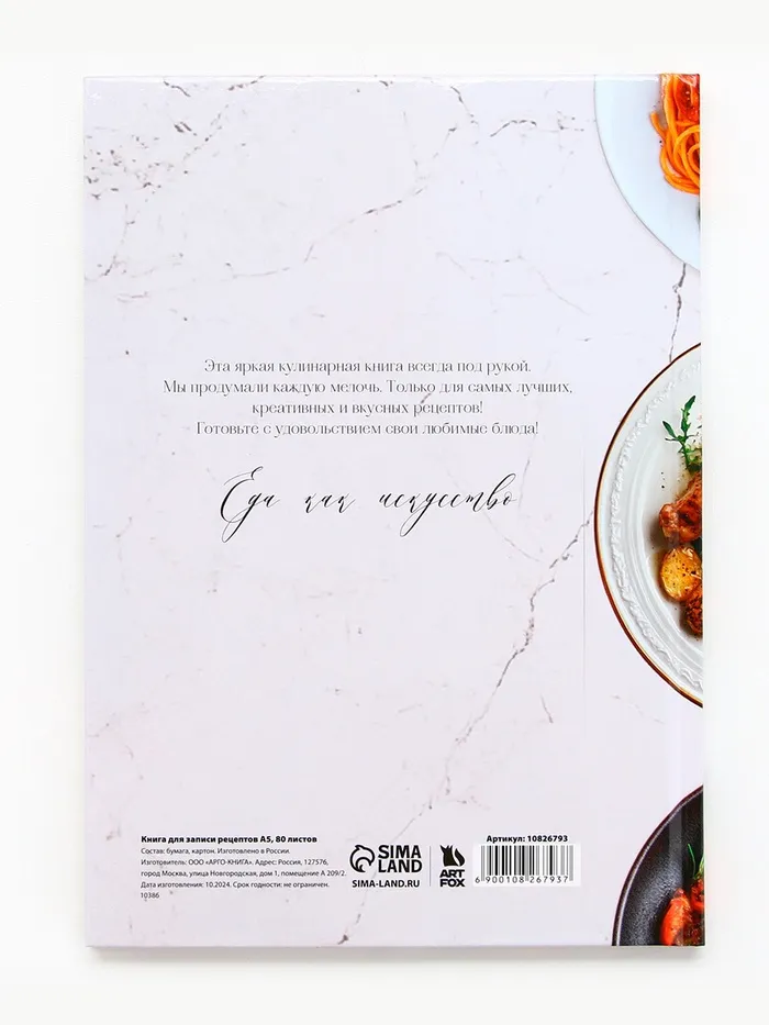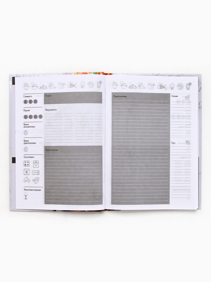 Кулинарная книга - Отличный помощник на кухне, она всегда будет под рукой, в отличие от любых электронных аналогов. Записи позволят не забыть про удачный рецепт, который снова захотите повторить. Для удобства использования, в книге вы можете отмечать сложность, время приготовления, где готовится и количество порций, для каждого рецепта, а так же записывать весь процесс приготовления. Благодаря твердой обложке, книга прослужит долгие годы. А универсальный формат, не займет много места на вашей кухне.