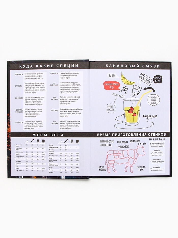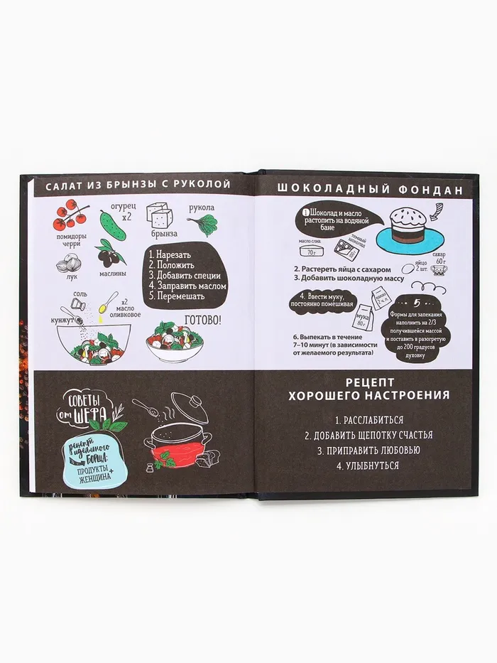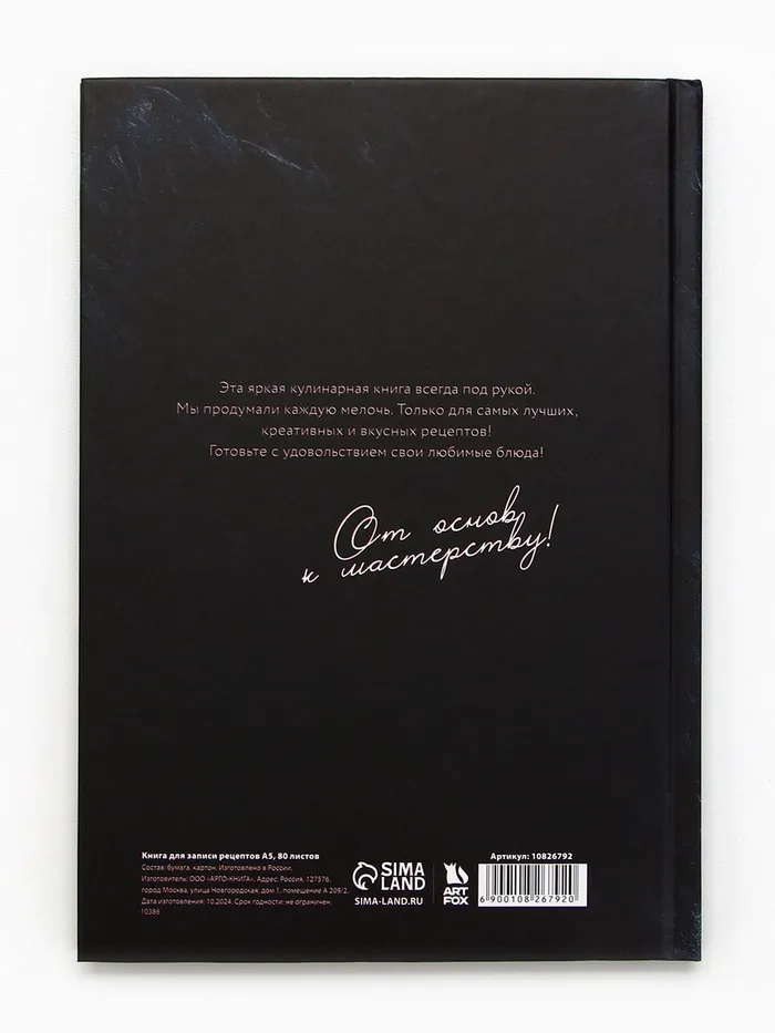 Кулинарная книга - Отличный помощник на кухне, она всегда будет под рукой, в отличие от любых электронных аналогов. Записи позволят не забыть про удачный рецепт, который снова захотите повторить. Для удобства использования, в книге вы можете отмечать сложность, время приготовления, где готовится и количество порций, для каждого рецепта, а так же записывать весь процесс приготовления. Благодаря твердой обложке, книга прослужит долгие годы. А универсальный формат, не займет много места на вашей кухне.