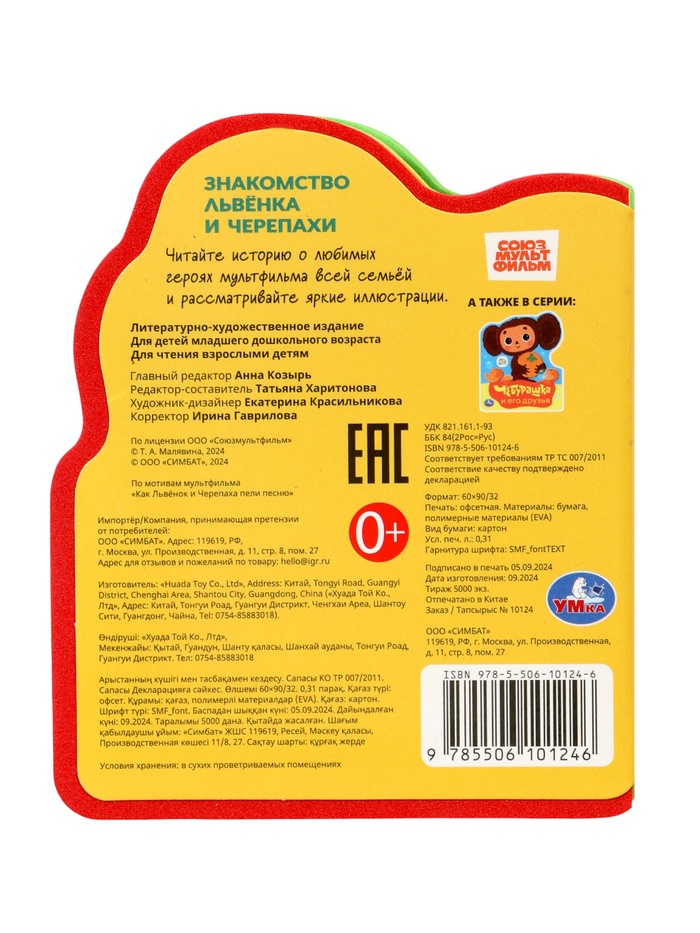 Книга EVA с фигурной вырубкой «Львёнок и Черепаха. Союзмультфильм» — Характеристики