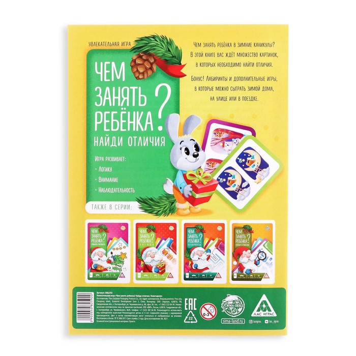 Новогодняя книга-игра «Чем занять ребёнка? Найди отличия» — это идеальное решение для зимних каникул и праздничного настроения. На 26 страницах вас ждут яркие новогодние сцены, где нужно найти различия, а также бонусные игры для всей семьи. Мягкая обложка и компактный формат делают книгу удобной для использования дома или в дороге.