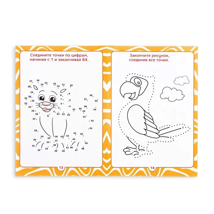 Листайте страницы книги и внимательно читайте задания. Готовьте карандаши, соединяйте точки, и у вас получится цельная картинка, которую можно раскрасить. Только будьте внимательны, сложность заданий повышается почти с каждой страницей книги.