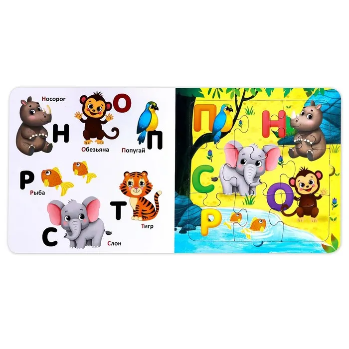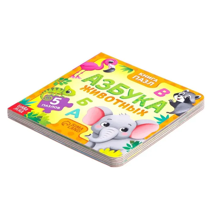 Книга картонная «Азбука животных», 12 стр., с пазлами 5 шт. — Характеристики