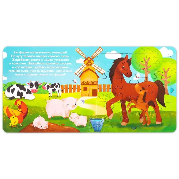 Книга картонная «Мамы и детки», 12 стр., с пазлами 5 шт. — Характеристики