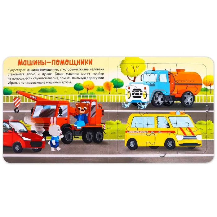 Книга картонная «Полезные машины», 12 стр., с пазлами 5 шт. — Характеристики