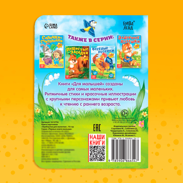 Книжки серии «Для малышей» — это первые помощники ребёнка в изучении окружающего мира. Они сделаны из картона, поэтому будут долго служить подрастающим детям.