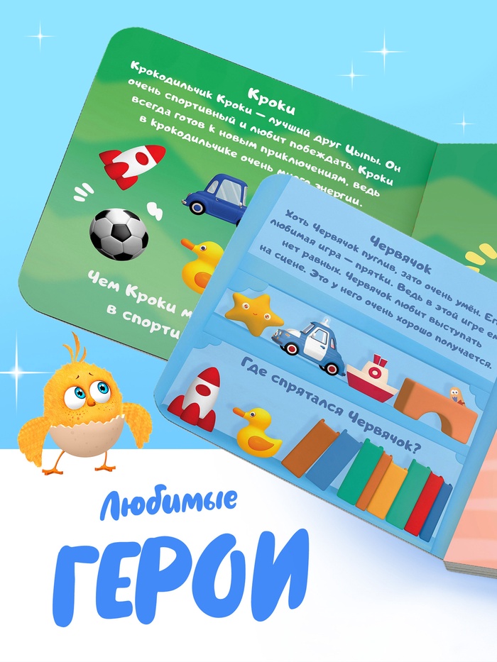 - Стимулирует речь и внимание. Родители могут рассказывать, где спрятался Цыпа, что он делает, и вместе искать предметы на странице.