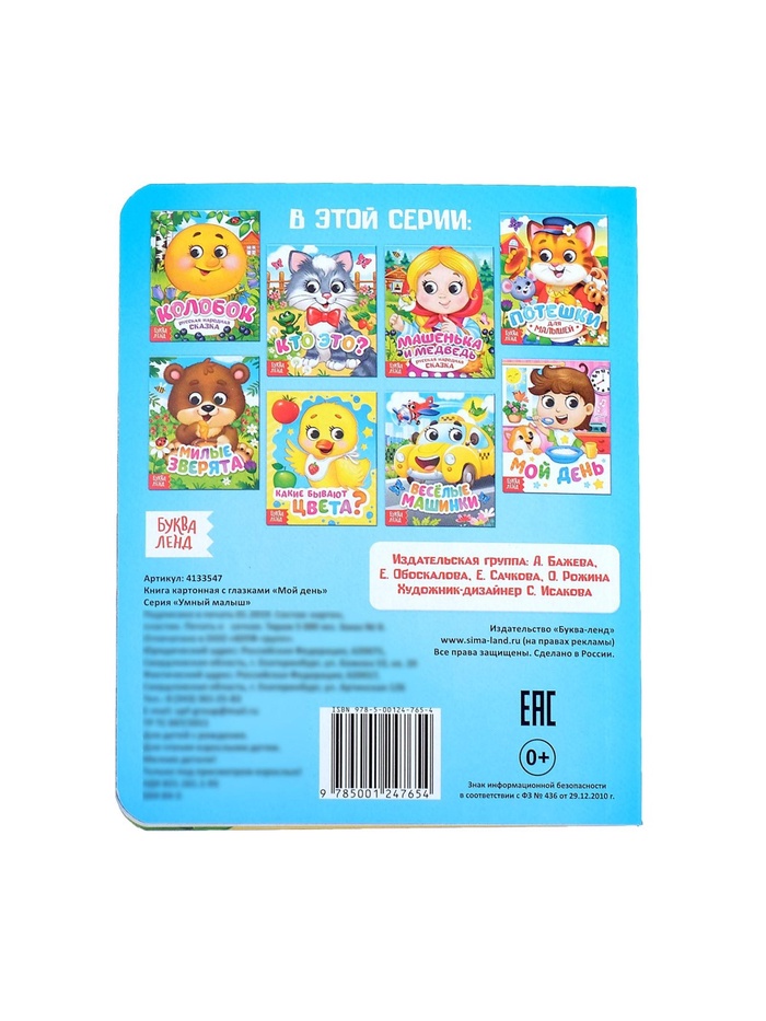 Книга картонная с глазками «Мой день», 10 стр. — Характеристики