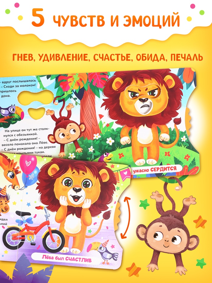 Картонная книжка с колесиком «С днём рождения, Лёва!» — это увлекательный способ познакомить малыша с миром эмоций. Через историю о львёнке ребёнок узнает, как выглядят и называются разные чувства, а интерактивное колесико поможет подобрать подходящую эмоцию к каждой ситуации в рассказе. Книга станет отличным помощником в развитии эмоционального интеллекта у детей от 1 года.