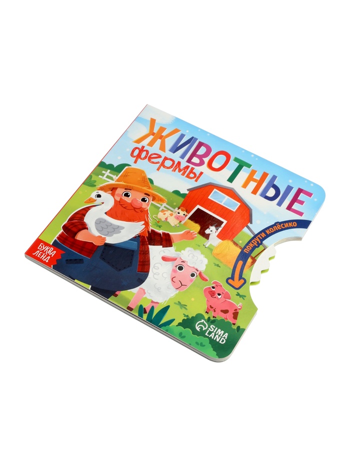Книга с колёсиком «Животные фермы» станет первой любимой историей для вашего малыша. Эти 12 страниц из плотного картона познакомят ребёнка с обитателями фермы через яркие иллюстрации и интерактивный элемент — вращающееся колёсико для выбора животных.