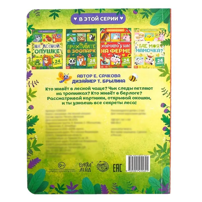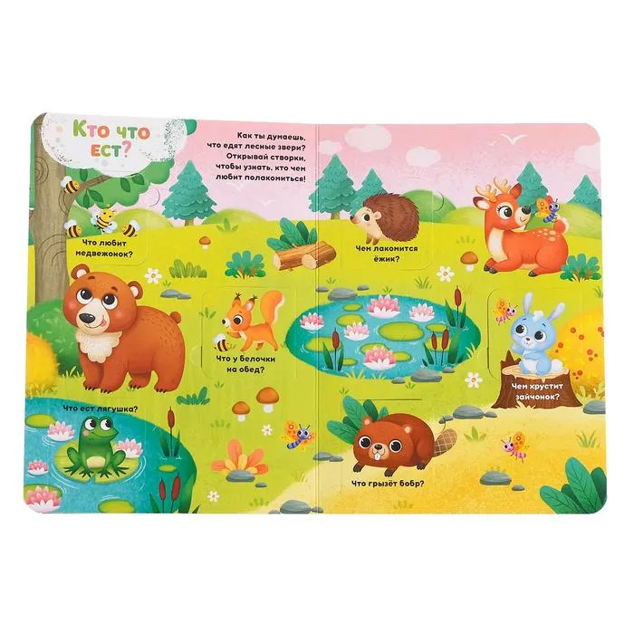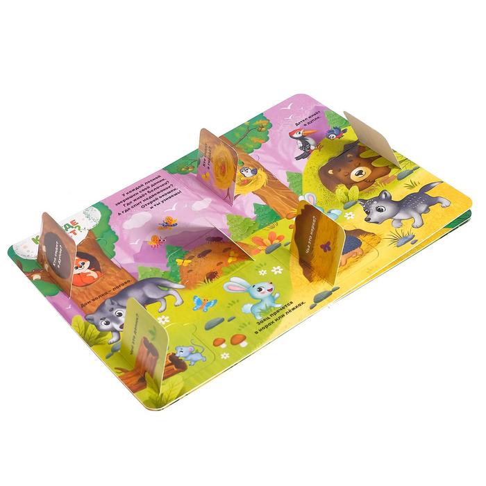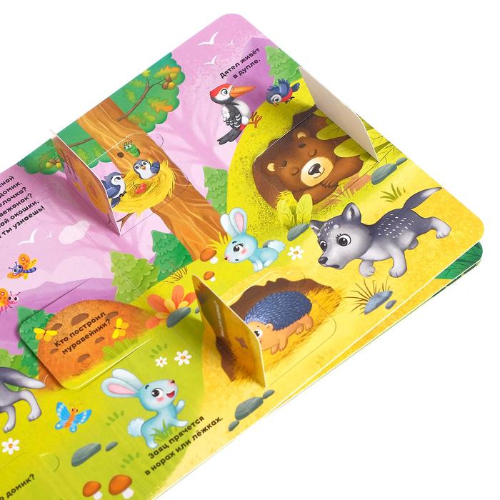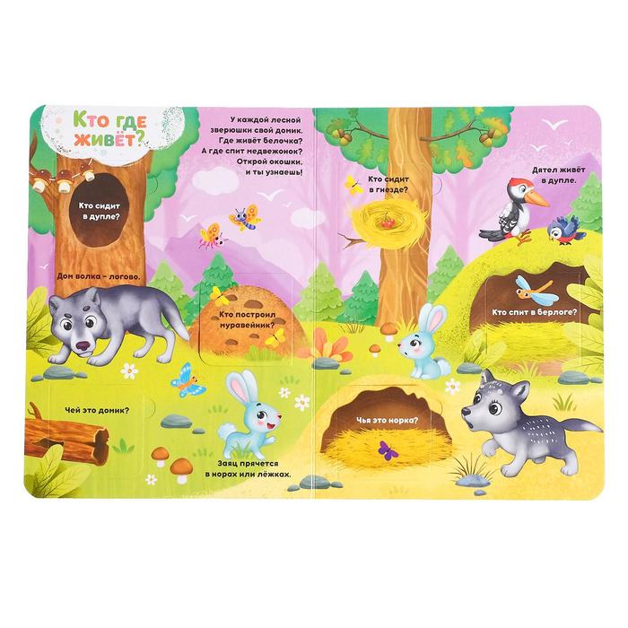 На страницах книги малыш встретит милых лесных обитателей и много интересных вопросов о них. Чтобы узнать ответ, достаточно посмотреть, кто спрятался в окошке.