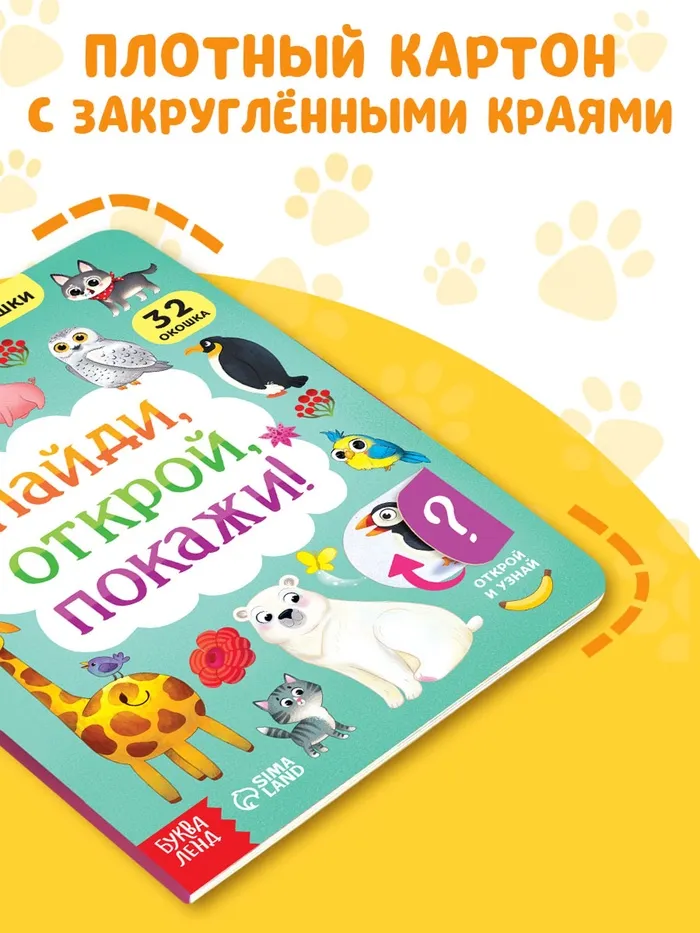 Книга картонная с окошками «Найди, открой, покажи!» 10 стр. — Характеристики