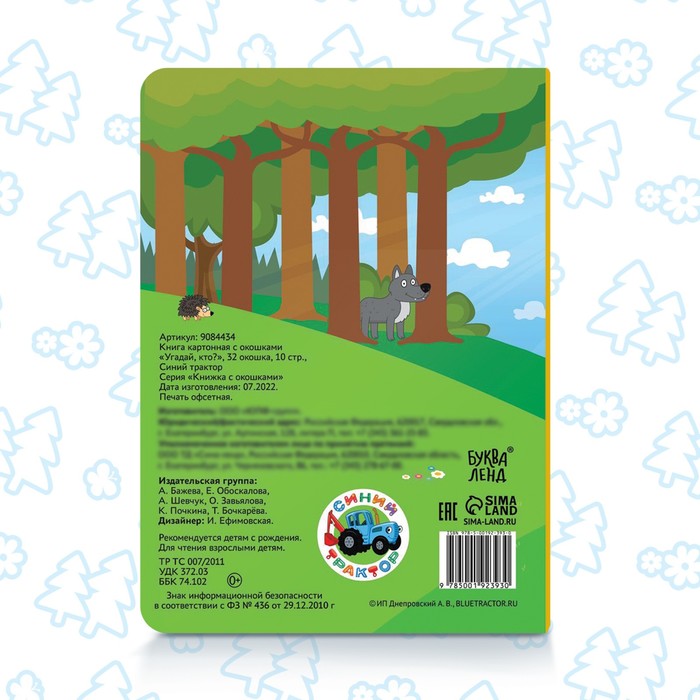 Книга картонная с окошками «Угадай, кто?», 32 окошка, 10 стр., Синий трактор — Характеристики