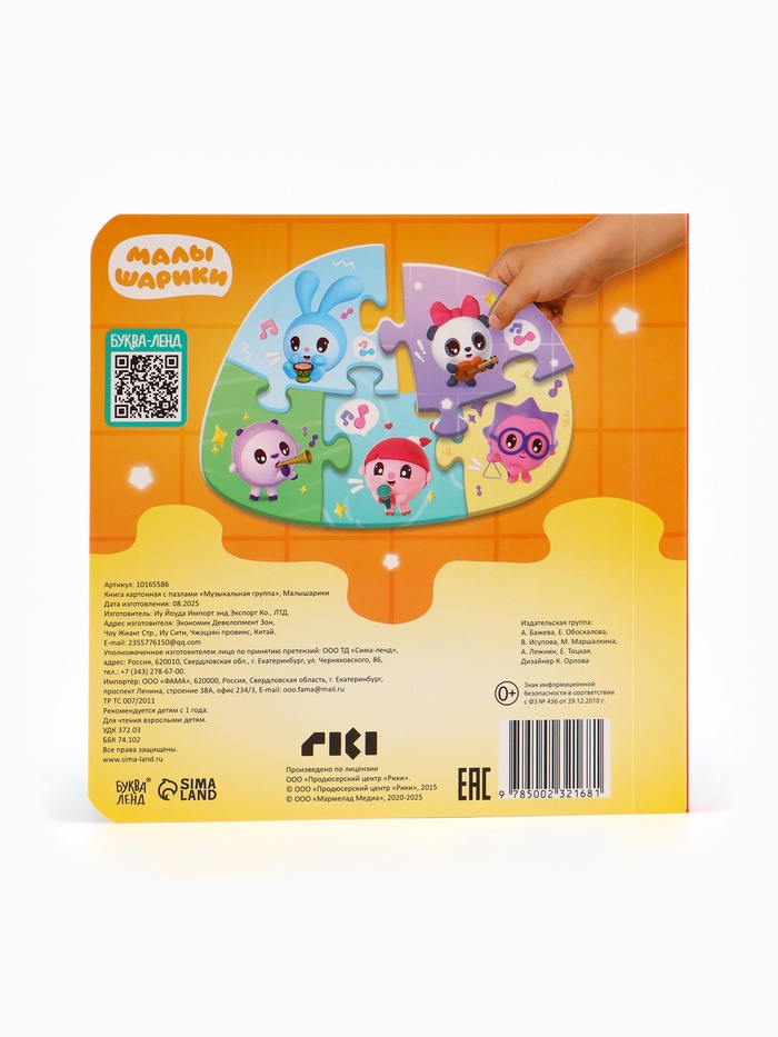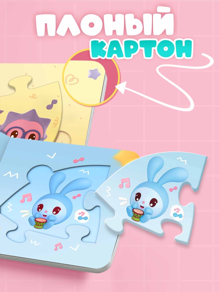 Книга картонная с пазлами «Музыкальная группа. Малышарики», 12 стр. — Характеристики