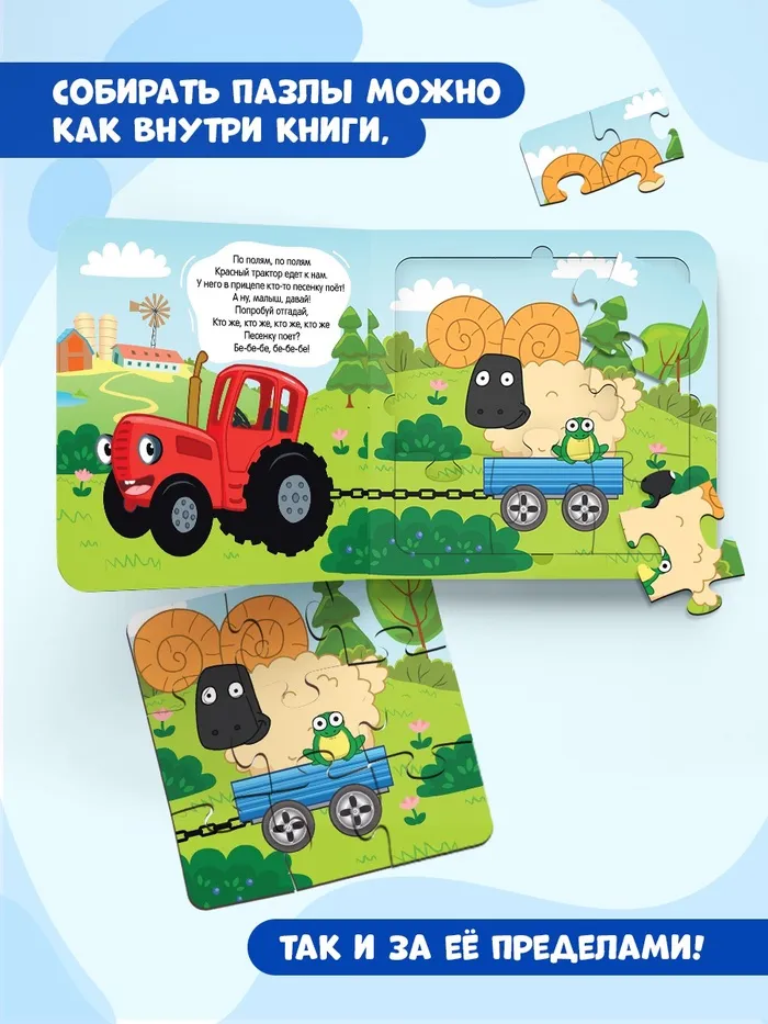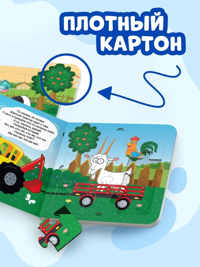 Картонная книга с пазлами из серии «Синий трактор» станет отличным выбором для любознательных малышей. Вместе с героями любимого мультфильма ребёнок не только погружается в добрые истории, но и собирает яркие пазлы. Каждая страница этой книги превращается в увлекательное приключение!