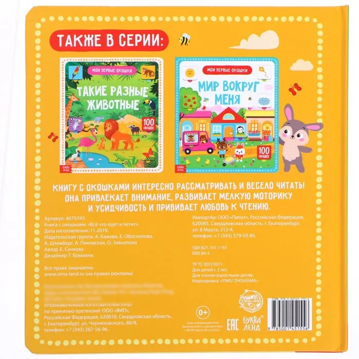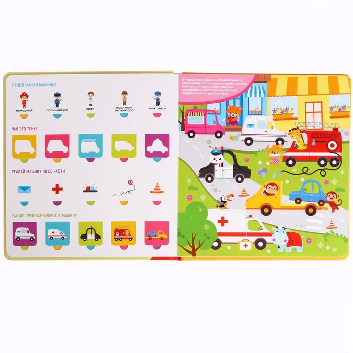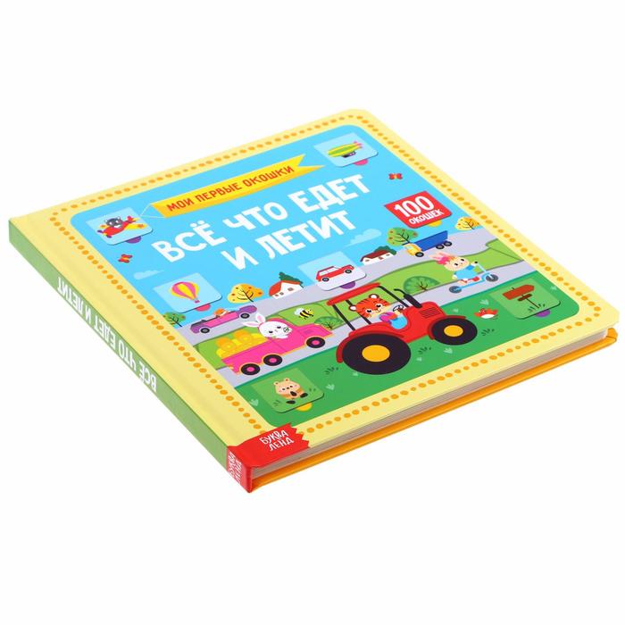 Книга картонная в твердом переплете 100 окошек «Всё, что едет и летит», 12 стр. — Характеристики