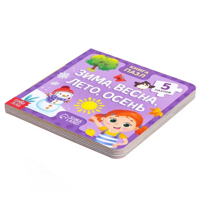 Книга картонная «Зима, весна, лето, осень», 12 стр., с пазлами 5 шт. — Характеристики