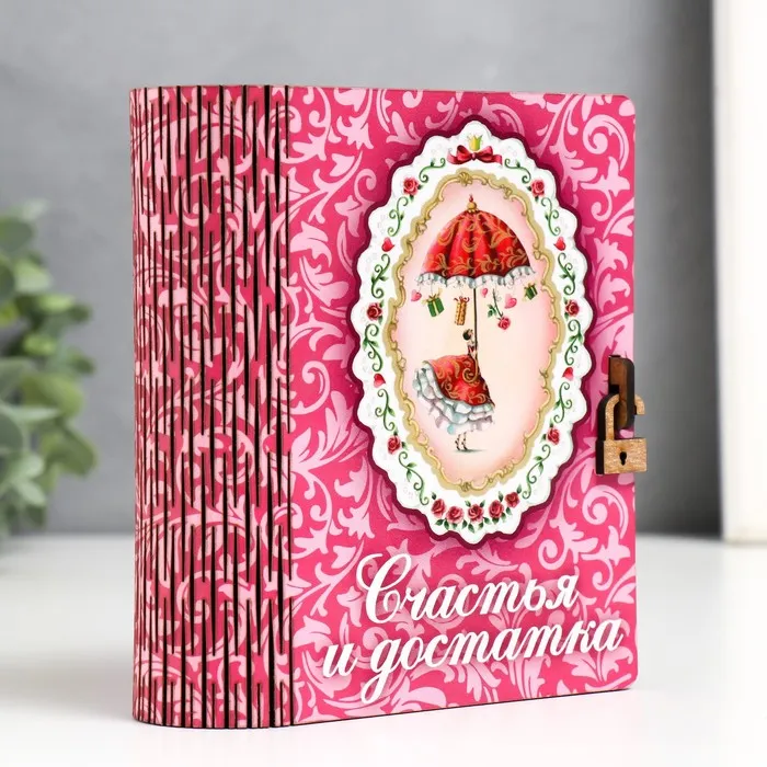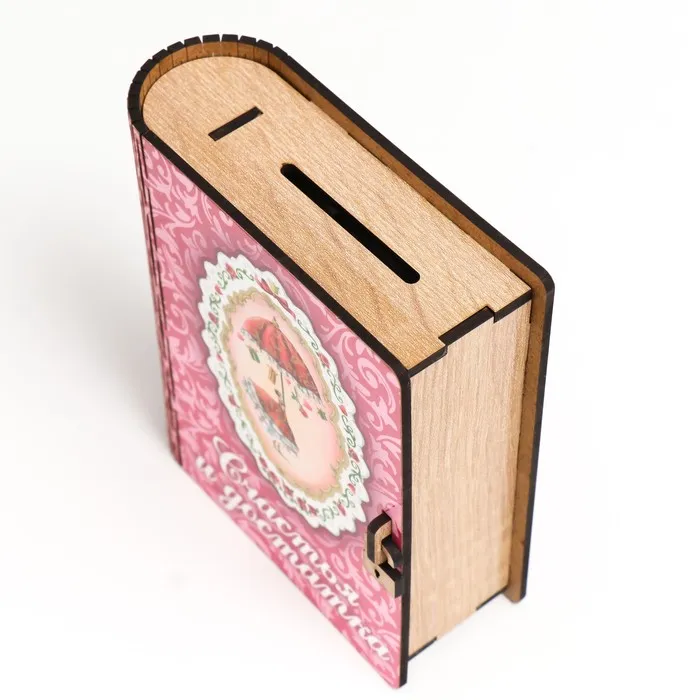 Книга-копилка для денег «Счастье и достаток», для купюр, монет, дерево, 14×12×5 см — Характеристики