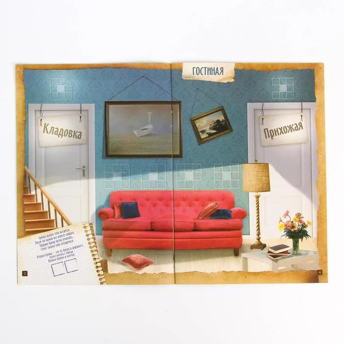 Каждый разворот книги — это одна из комнат, где таятся различные загадки и головоломки.