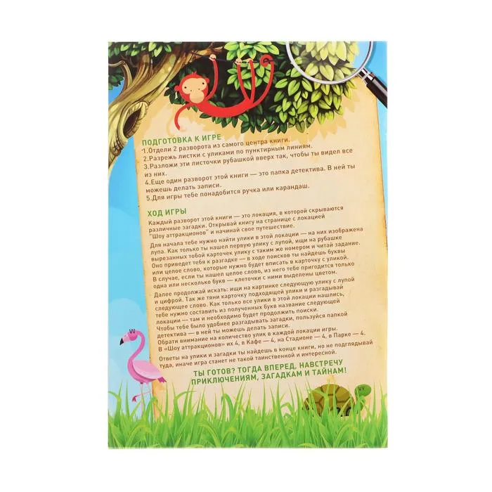 На улице ярко светит солнце. Кажется, что этот день не предвещает никакой беды. Но вы знаете, что впечатление обманчиво. Как настоящий сыщик, вы привыкли быть начеку в ожидании новых дел. Так и случилось — размышления прервал резкий звонок. Вот это да! Из зоопарка сбежал хамелеон, и вам срочно нужно отправляться на его поиски.