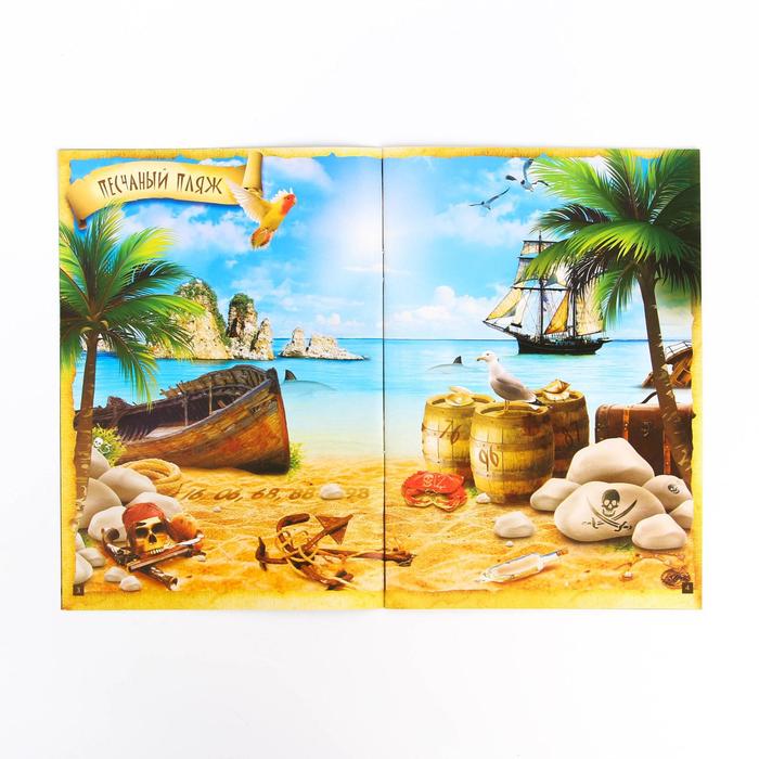 В этой книге вас ждут тайны и загадки. Каждый разворот — это локация пиратского острова, где скрываются различные секреты. Идите по следу из улик, разгадывайте шифры и головоломки — они приведут вас к сокровищам! Отыщите к ним путь и раскройте местонахождение клада.