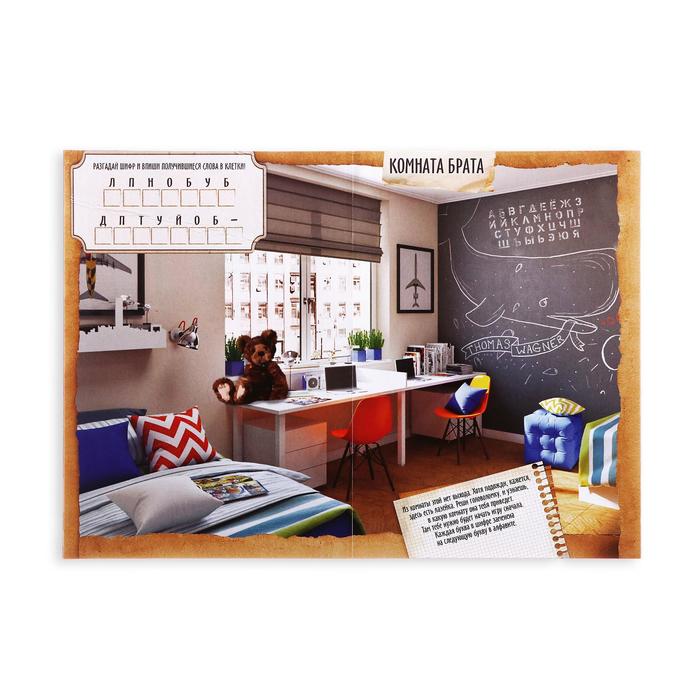 Каждый разворот книги — это одна из комнат, где таятся различные загадки и головоломки.
