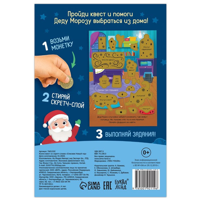 Книга - квест со скретч-слоем «Спасаем Новый год», 12 стр. — Характеристики
