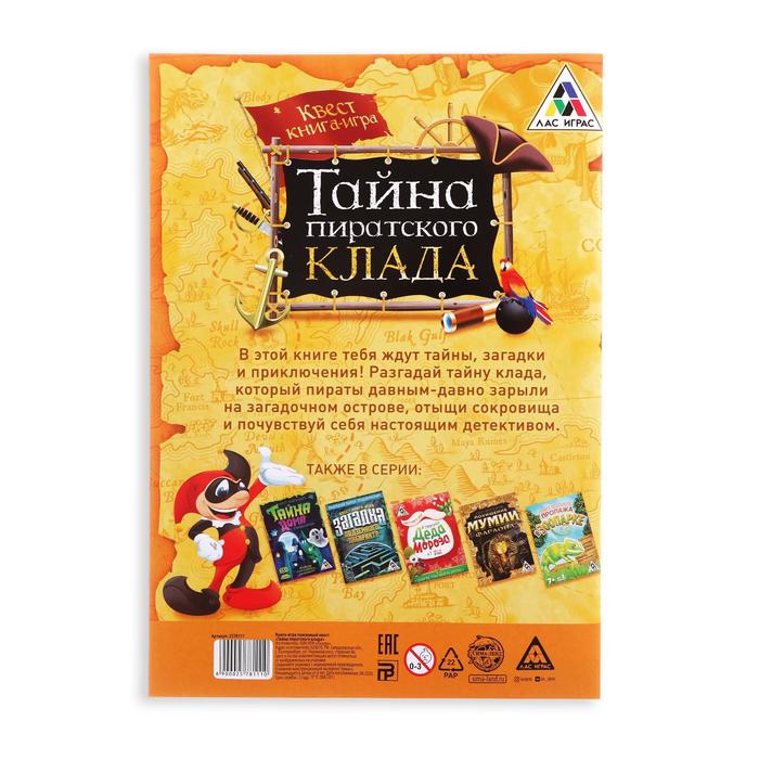 В этой книге вас ждут тайны и загадки. Каждый разворот — это локация пиратского острова, где скрываются различные секреты. Идите по следу из улик, разгадывайте шифры и головоломки — они приведут вас к сокровищам! Отыщите к ним путь и раскройте местонахождение клада.