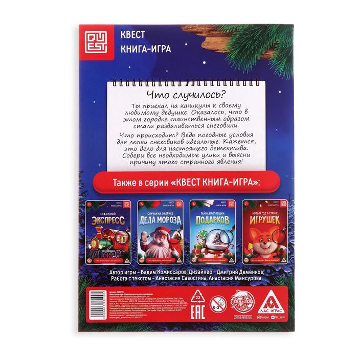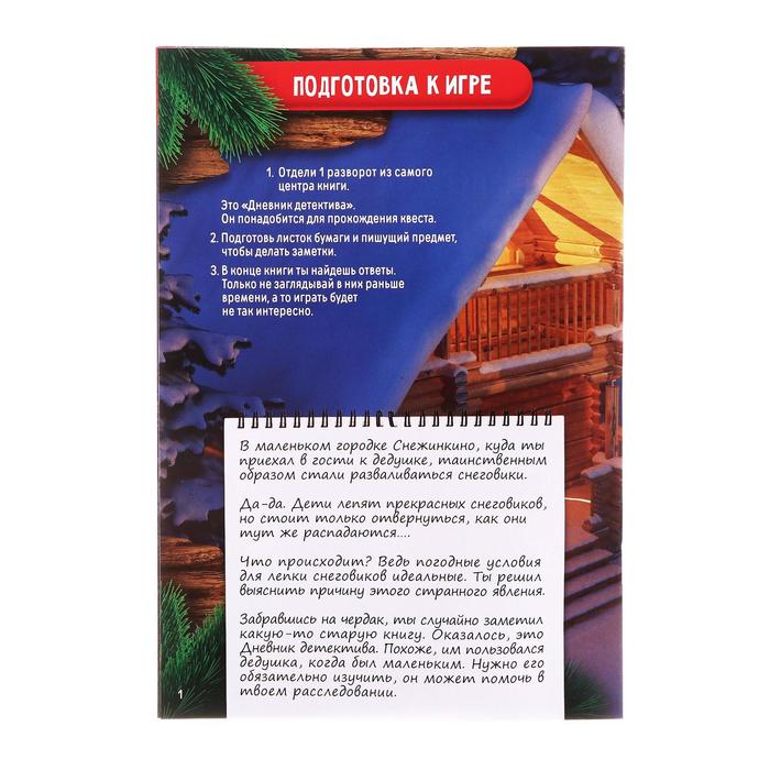 Каждый разворот книги — это одна из локаций города Снежинкино. Начните с первой локации, открывайте книгу на странице «Двор дедушкиного дома» и отправляйтесь в путешествие, полное тайн.