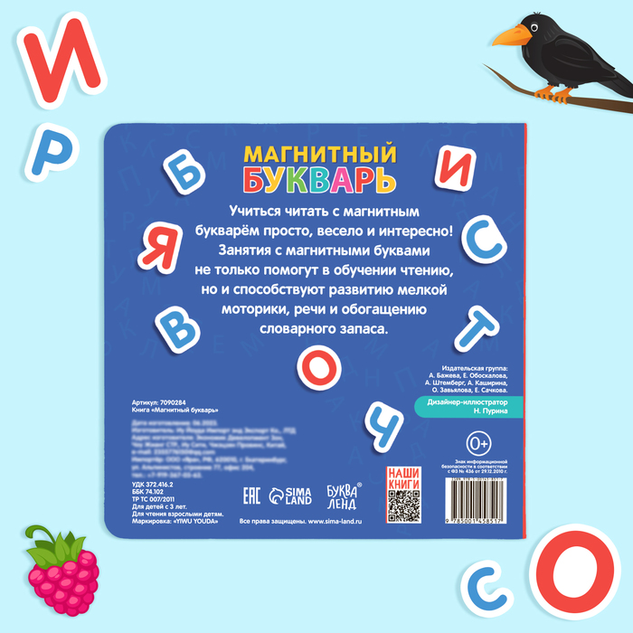 Книга «Магнитный букварь», 60 магнитов, с мешочком, 8 стр. — Характеристики
