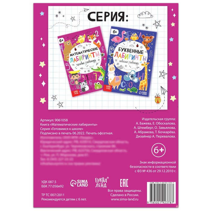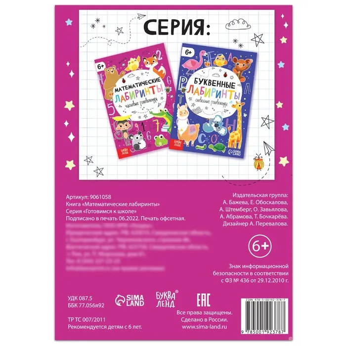 Книга «Математические лабиринты», 20 стр., от 6 лет — Характеристики