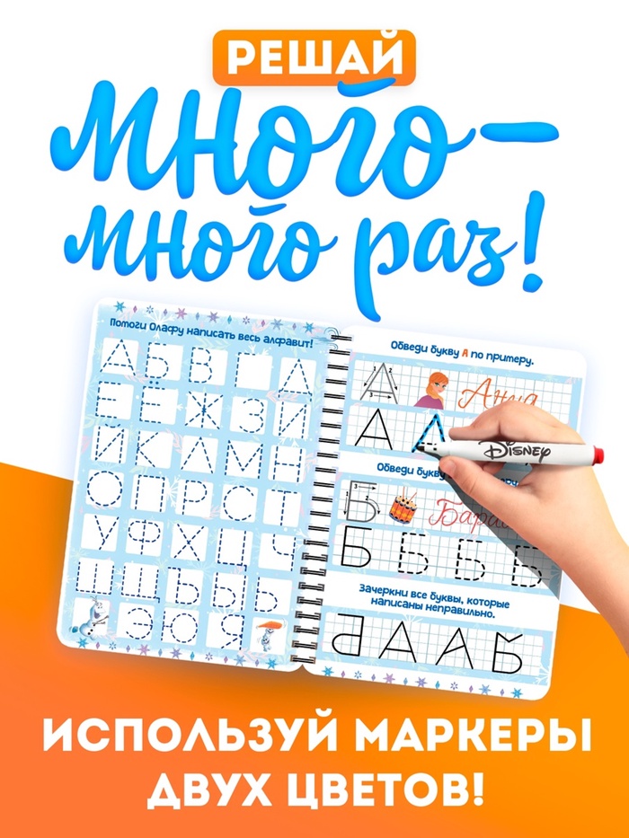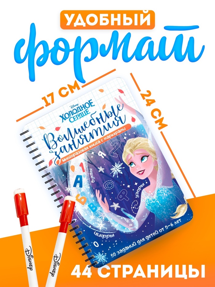 Книга многоразовая детская «Волшебные занятия», 44 стр., 2 маркера, Холодное сердце — Характеристики