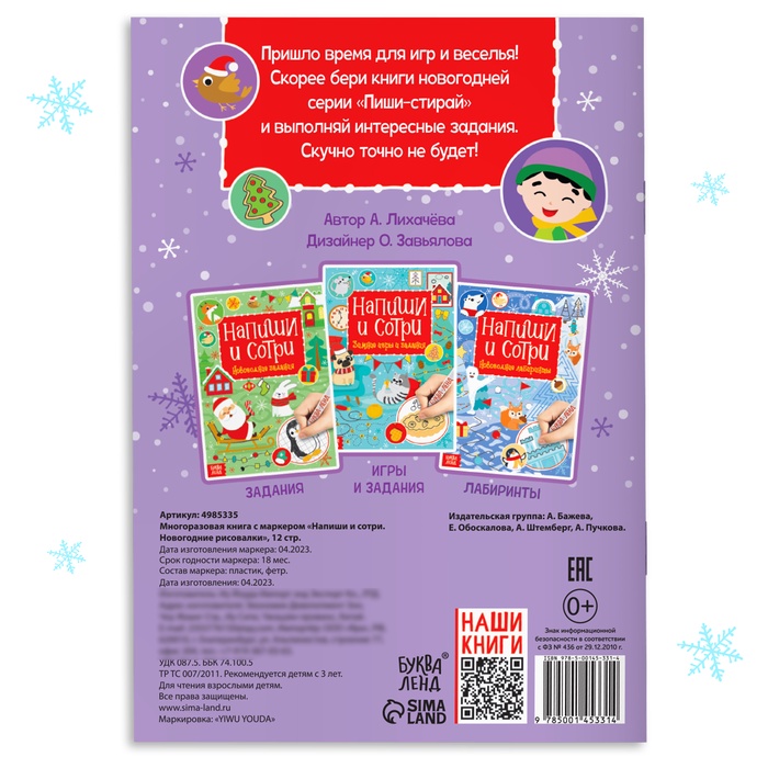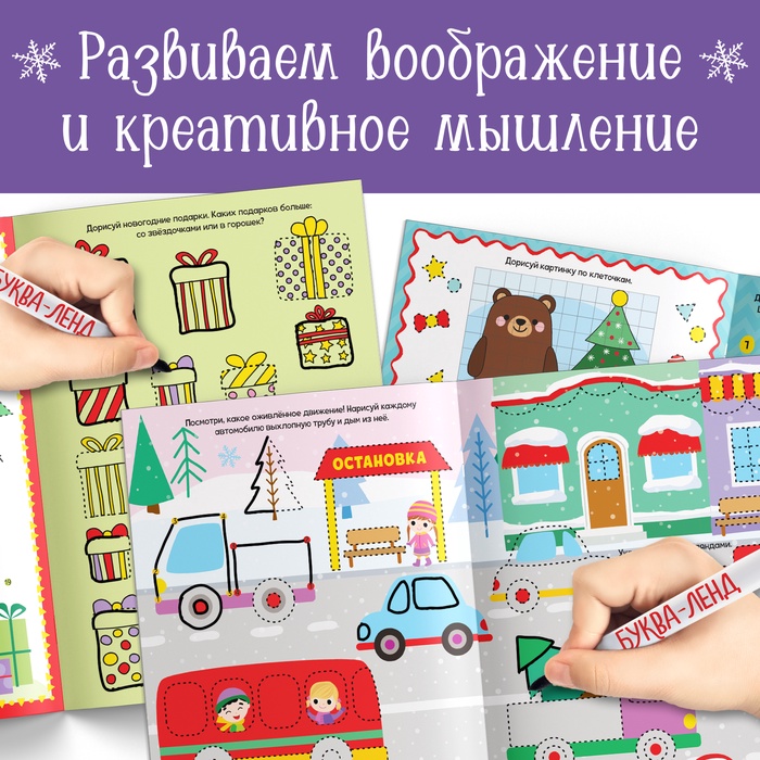 Многоразовая книга «Напиши и сотри. Новогодние рисовалки» поможет скоротать время перед долгожданным праздником, а ещё не даст заскучать и поможет потренировать важные навыки.