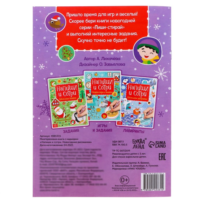 Книга многоразовая «Напиши и сотри. Новогодние рисовалки», с маркером, 12 стр. — Характеристики
