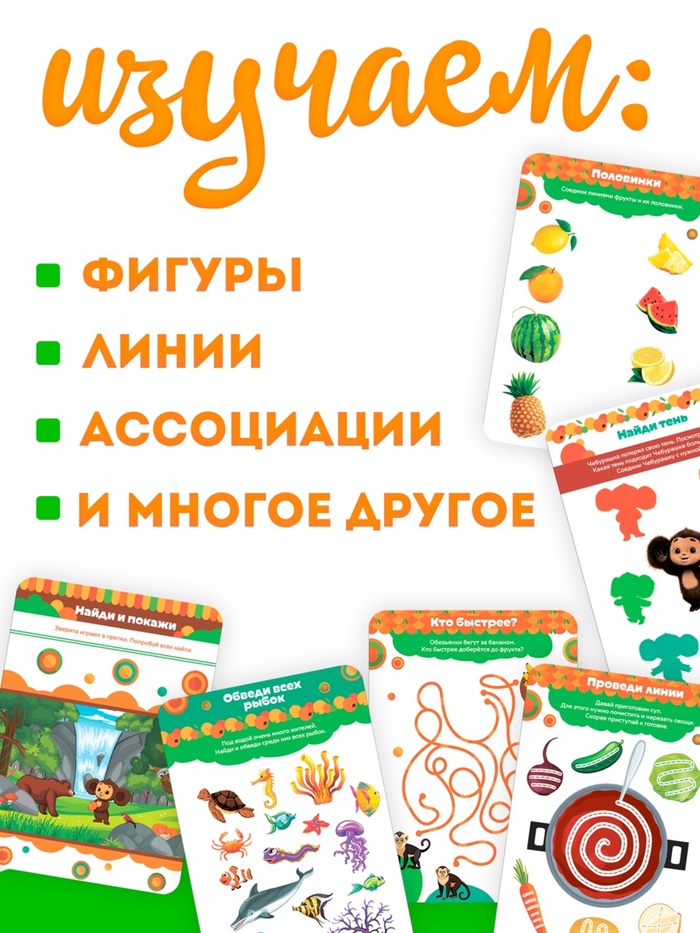 Яркие иллюстрации с Чебурашкой мотивируют ребёнка к обучению. Задания построены так, чтобы развивать логику, внимание и творческий подход.